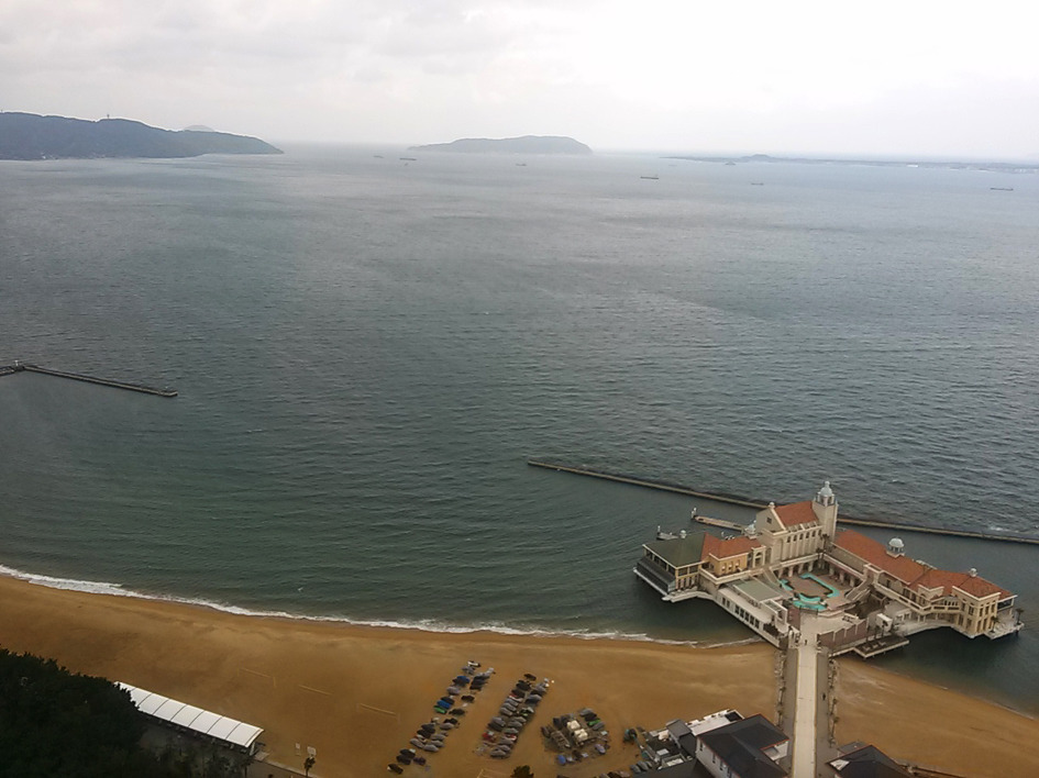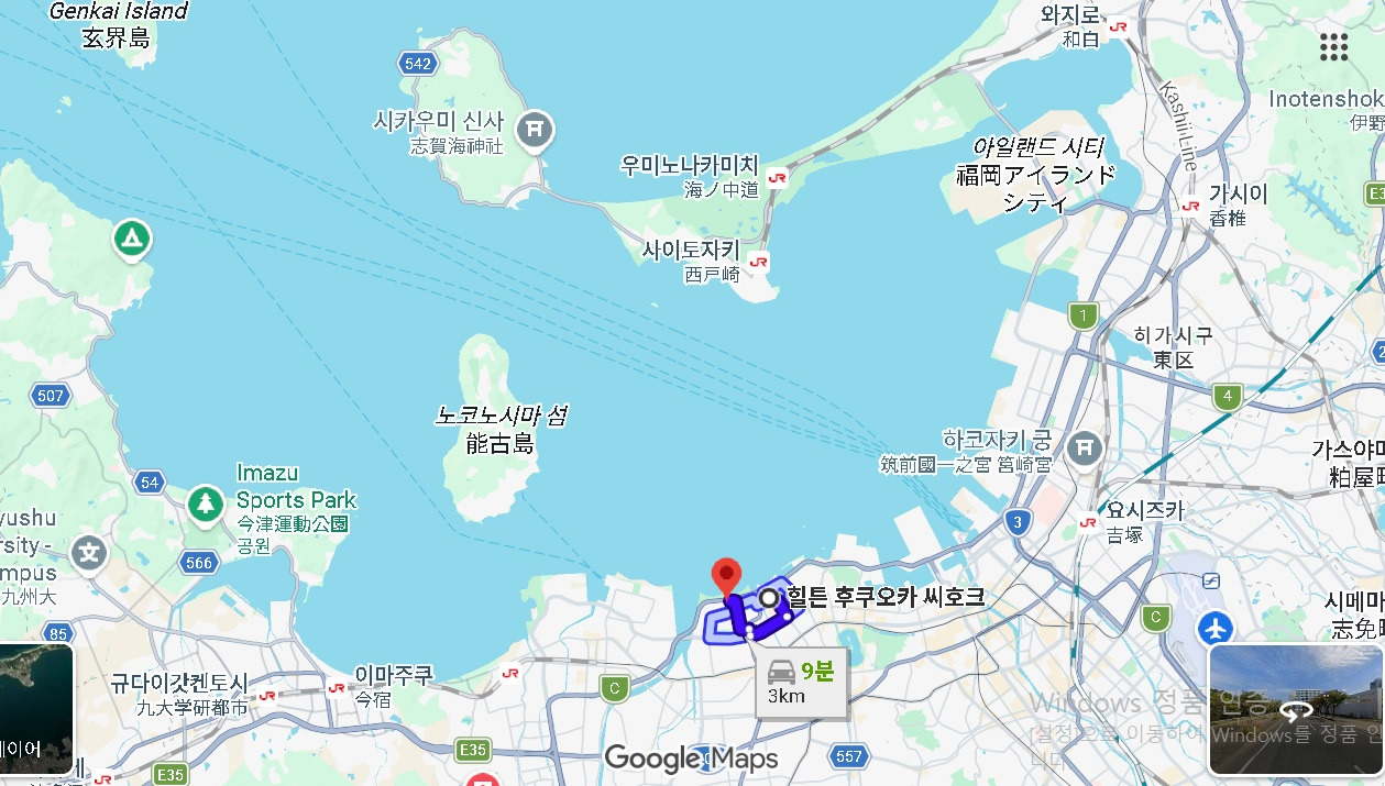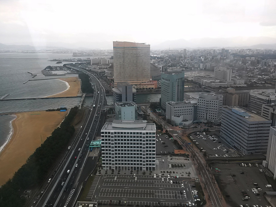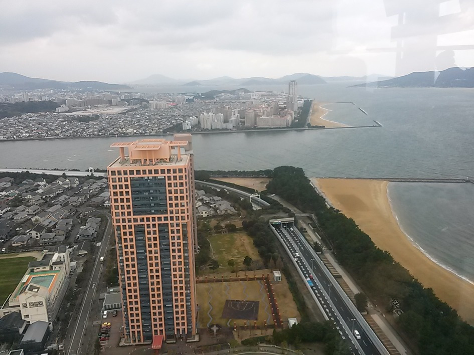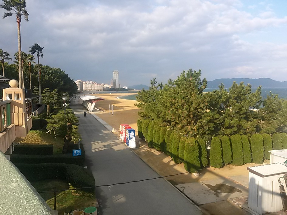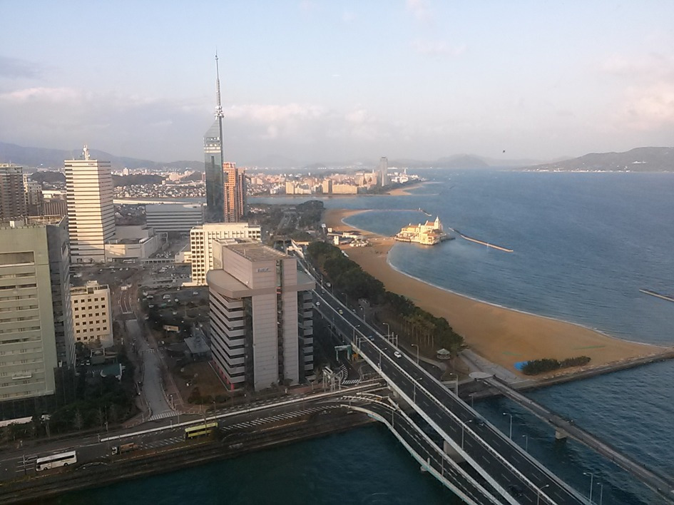 부페식으로 조식을 먹고 방을 나오면서 보다 선명해진 후꾸오까 해변정경을....