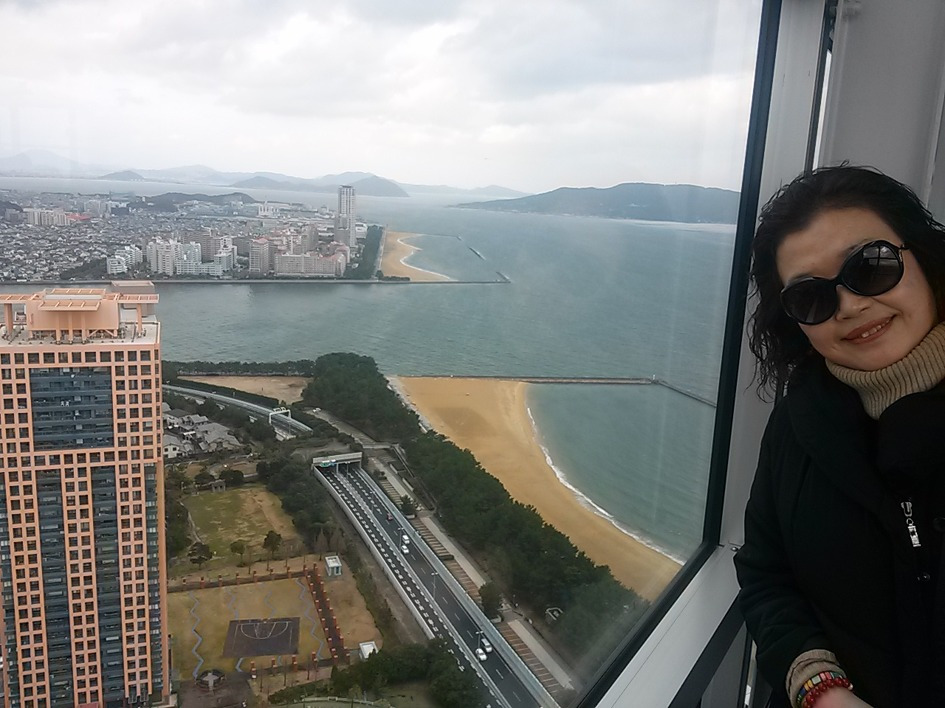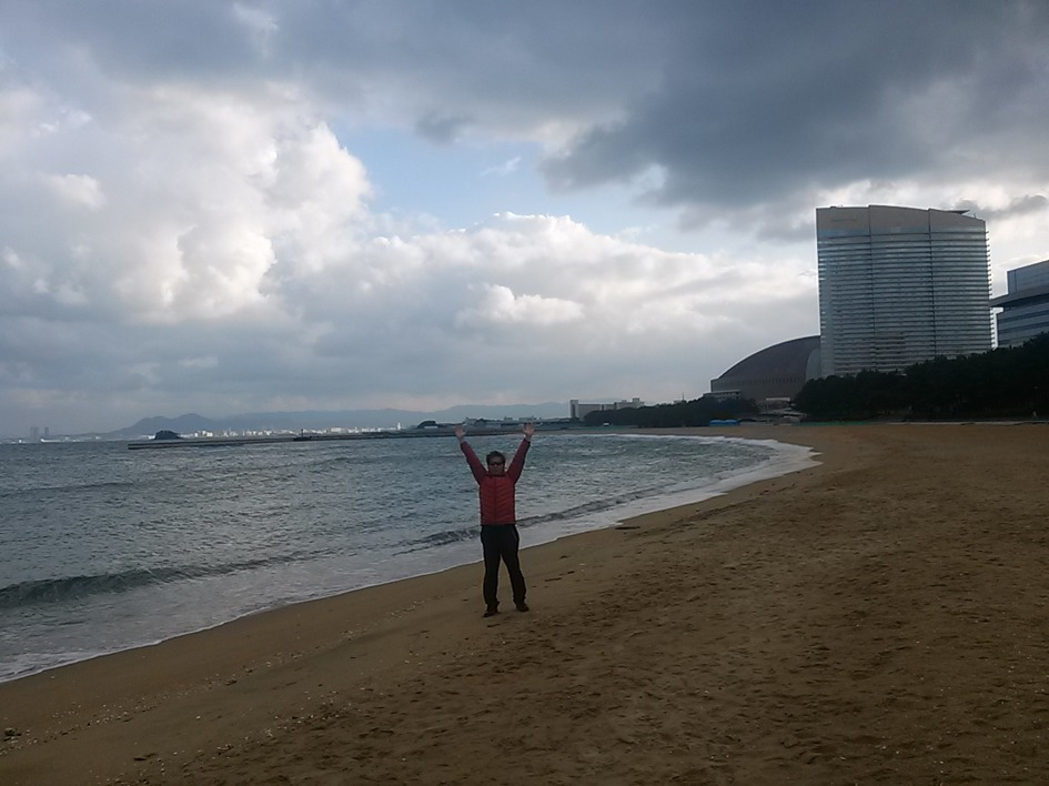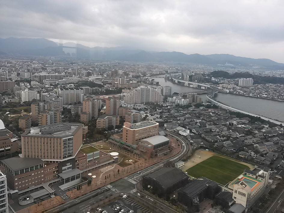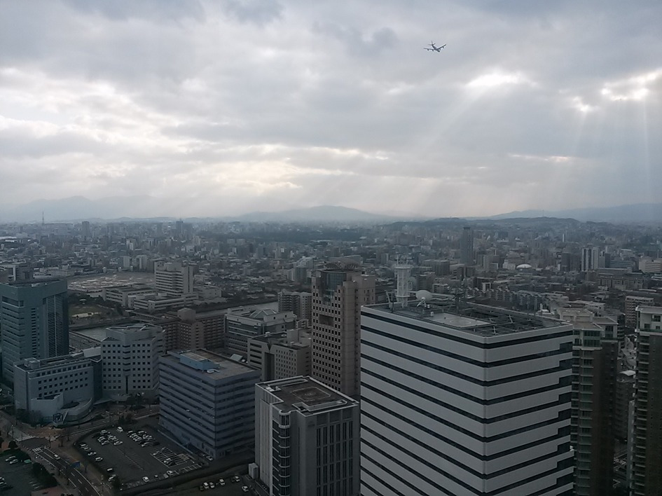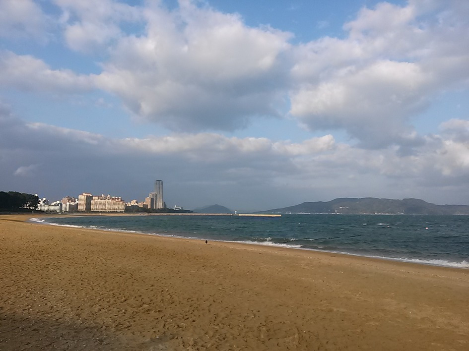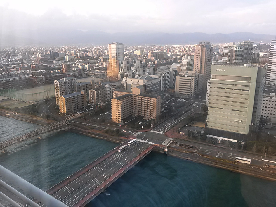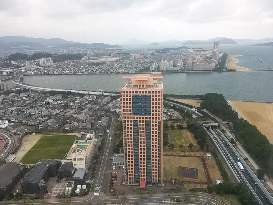 부페식으로 조식을 먹고 방을 나오면서 보다 선명해진 후꾸오까 해변정경을....