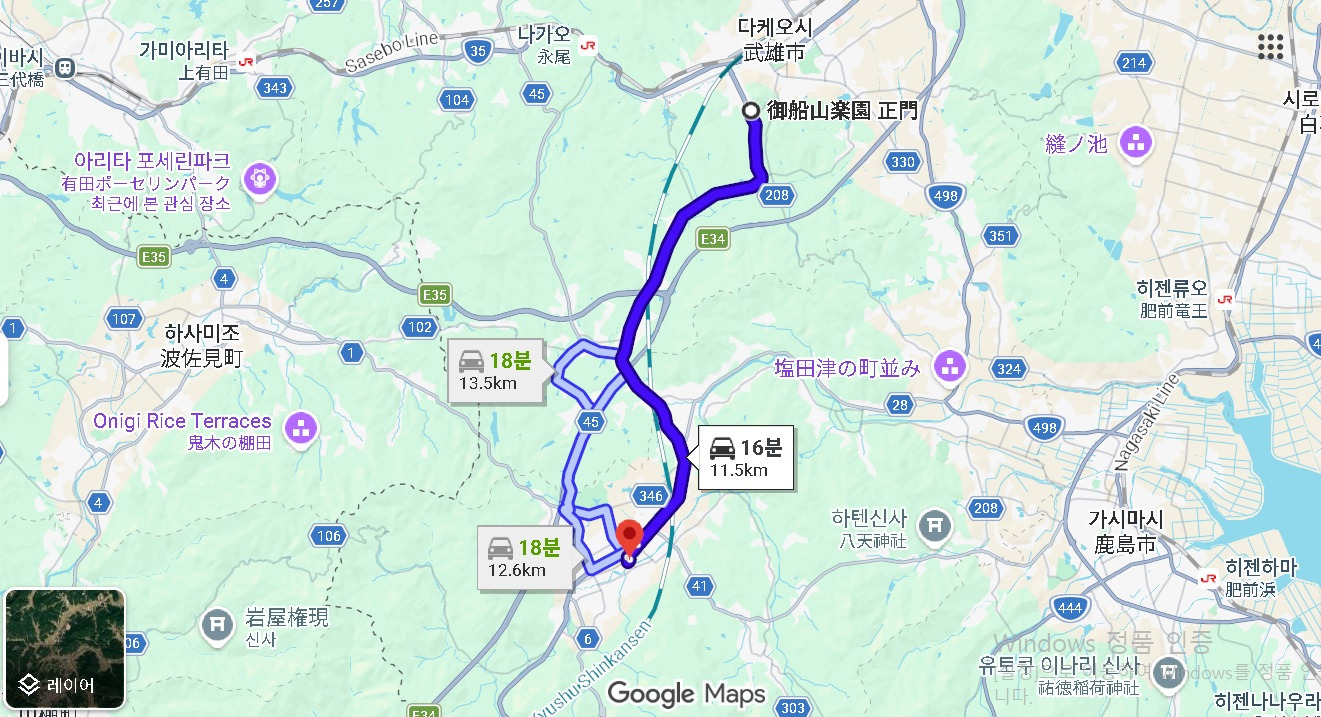 和多屋別荘(09:30)→武雄神社(09:40~11:00)→武雄圖書館(11:10~11:40)→佐賀워싱턴호텔중식(12:40~13:20)→佐賀城跡(13:30~14:10)→佐賀空港(14:30~17:10)→인천공항(18:30