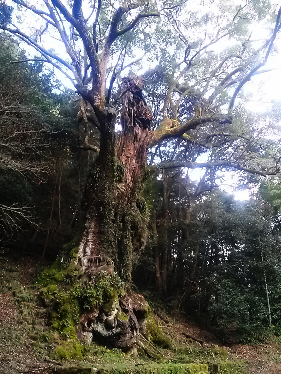 신사 뒷편 대나무 숲을 지나면 산자락에 수령 3,000년 녹나무(楠, 쿠스노키)