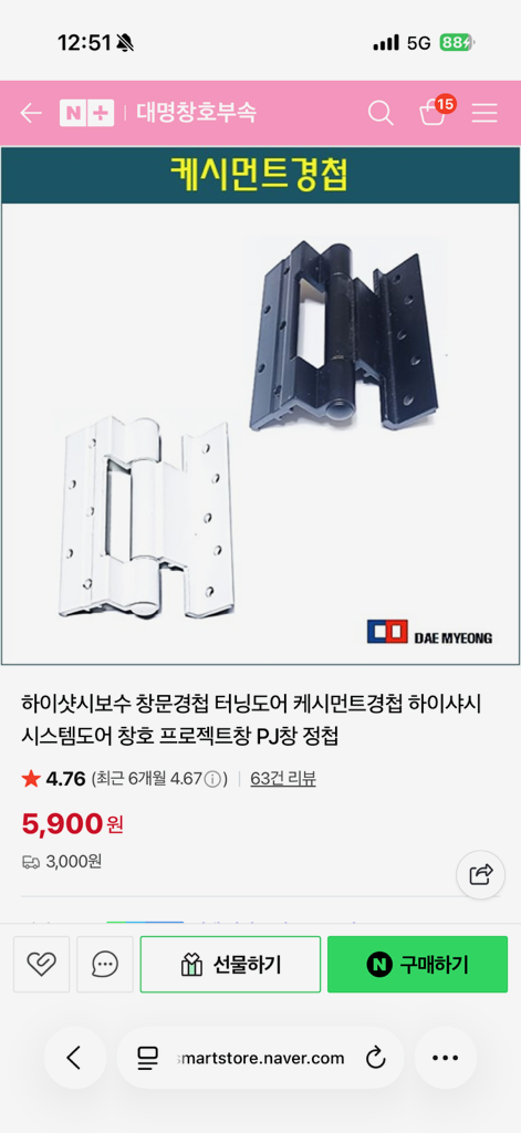 하루를 허탕치고 샤시용 장석, 경첩, 창호용 경첩.. 임의 명칭으로 검색해서 비슷한 사진을 간신히 찾았다